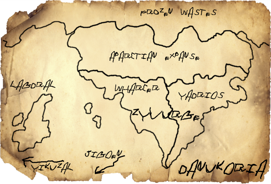 On the wall of the dining hall are several maps of the world. I’ve drawn a copy of one that wasn’t too complex on a scrap of paper I found with some charcoal from the fireplace.